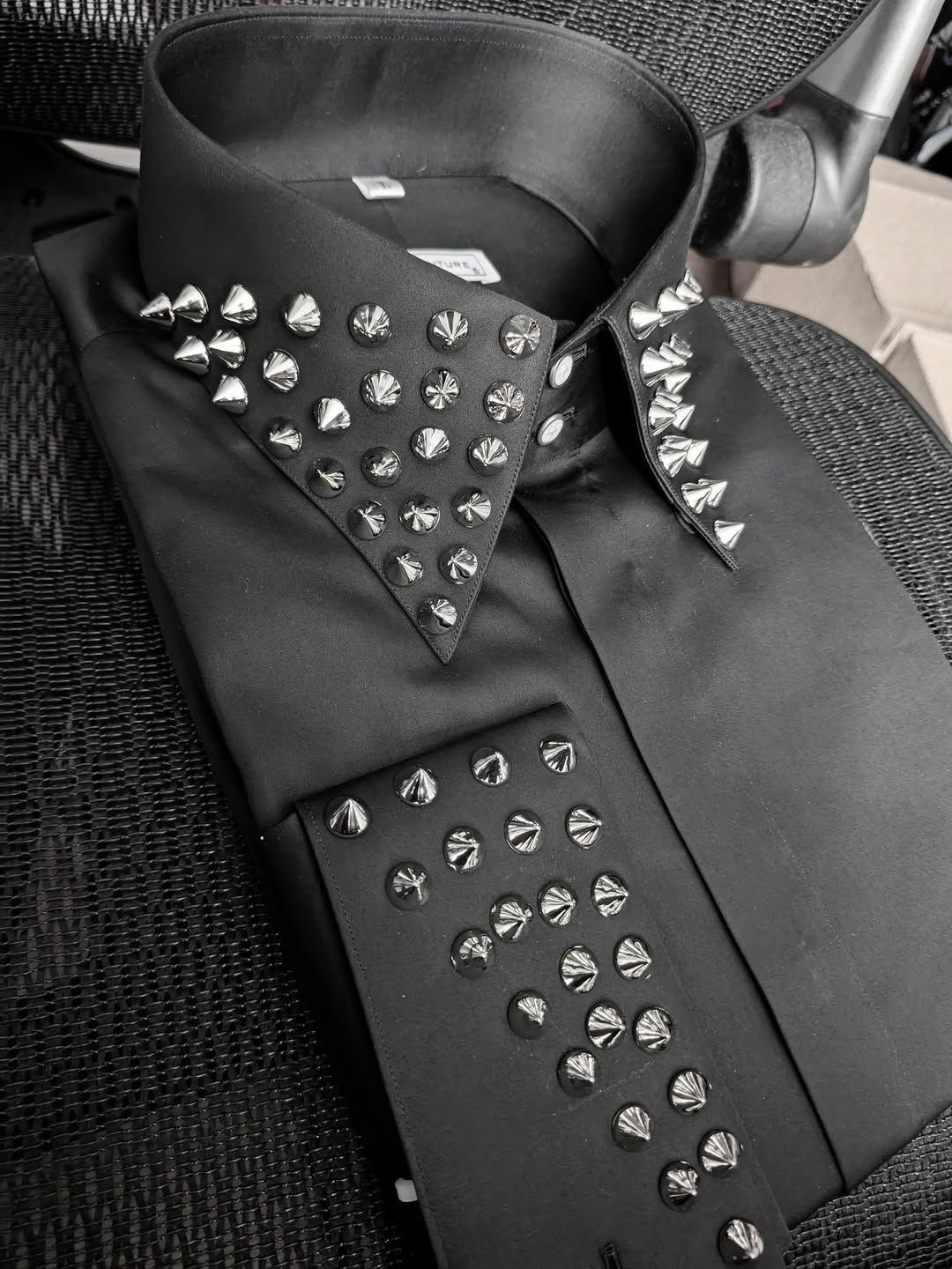 french cuffs with silver studded collar and cuffs. This shirt can be made in any color/style(inquire).