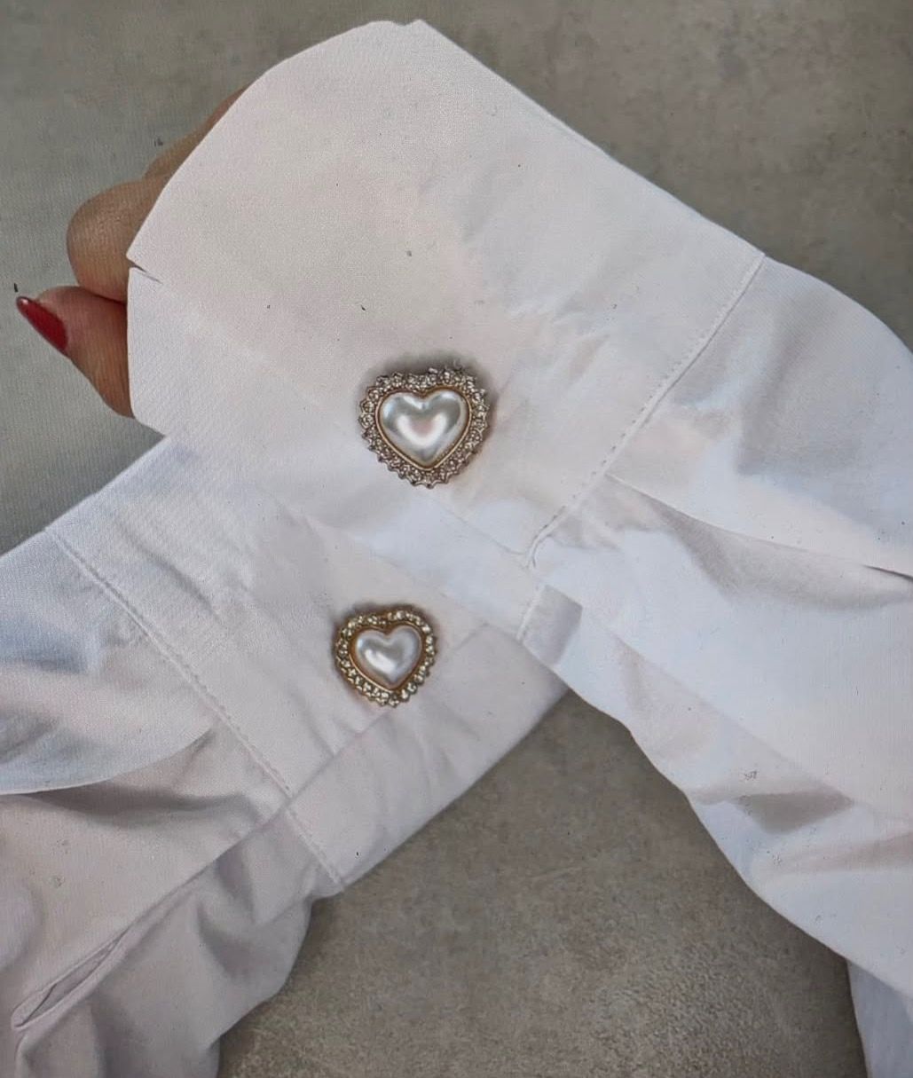 MorCouture Pearl Heart Button Covers. Fork hinged slide on, snap over button covers. Click image for larger picture.